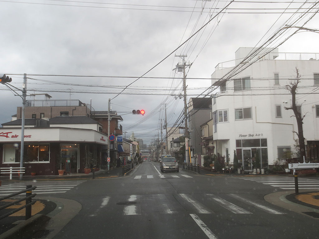 この写真は、鳴尾御影線の東灘区の住吉の辺り、どんよりとした雲が広がっていますね。