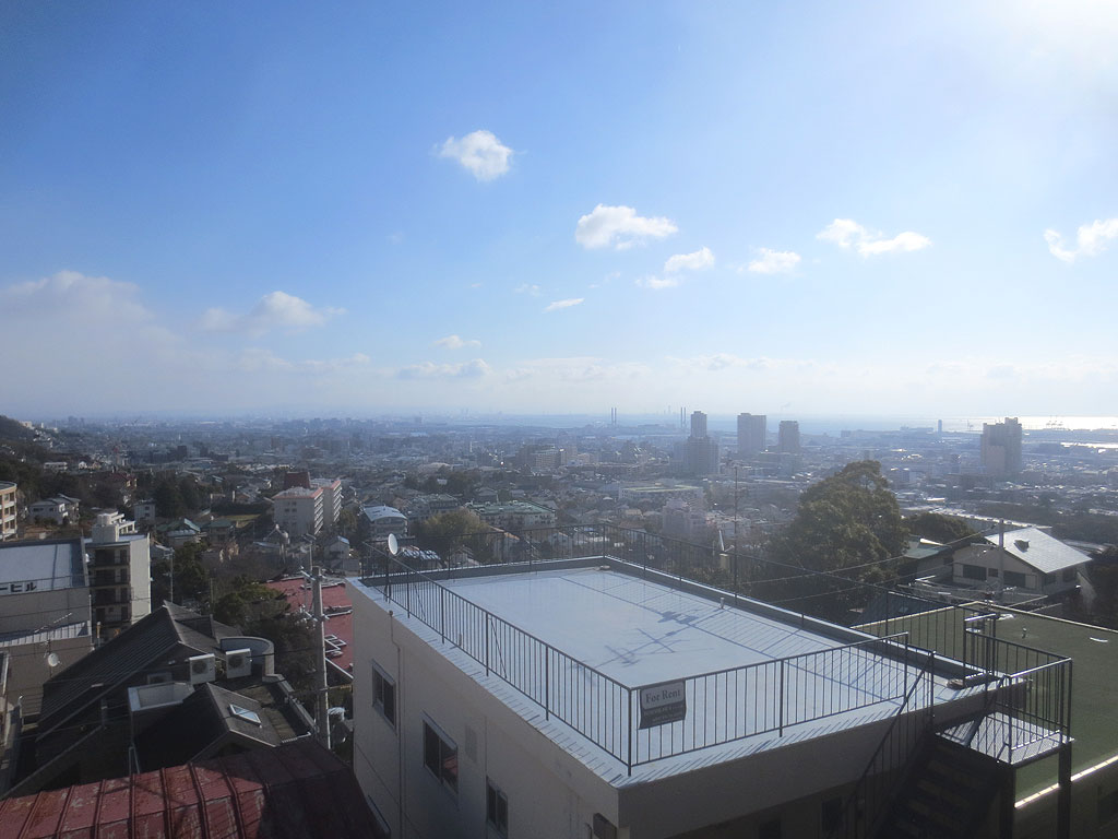 甲南病院近くから西方面の眺望。阪急御影駅の山の手の、鴨子ヶ原や渦ヶ森の中古マンションをご案内させて頂く時には、深田池から甲南病院を抜けて行く、この道を通るのですが、甲南病院に着く直前に、この眺望が、車の左側に開けて来ますので、多府県から来られたお客様は、いつもこの場所で、あまりの眺望に、ウォーと歓声をあげられ、この坂道のきつさを、あらためて感じられる事も多いのです。