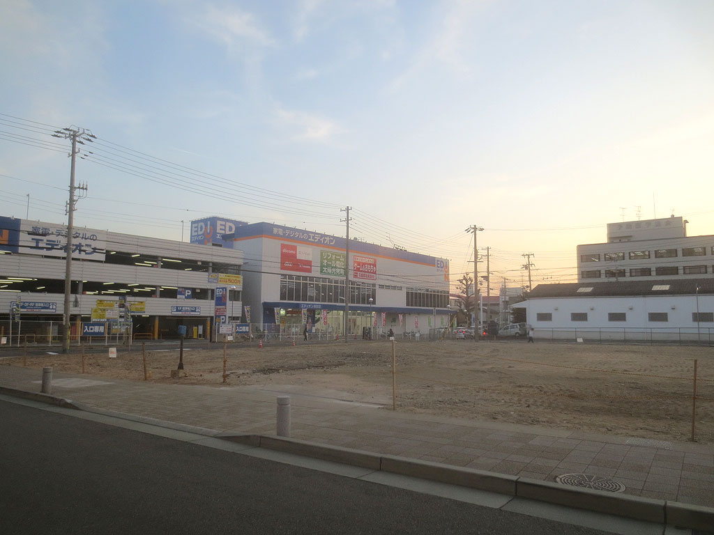 ニトリ神戸御影店で買い物をさせて頂き、阪神御影駅の方に向けて歩いていたのですが、ここは先ほどもお話に出たエディオン御影店の東側の道から北方面に向けて撮った写真なのですが、エディオンの北のお向かいに、こんなに広い空地が出来ていました。