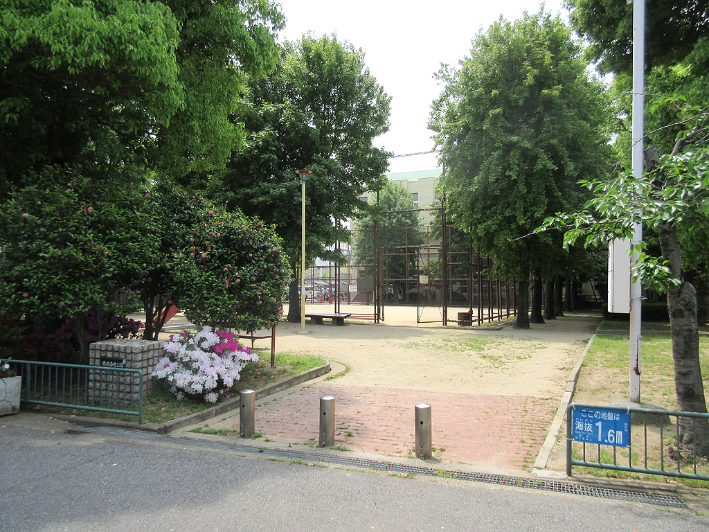 何故、今回、車を停めてでも、この魚崎南町公園の写真を撮ったかと言いますと、入口の右側にある「海抜1.6M」の表示が気になったからです。