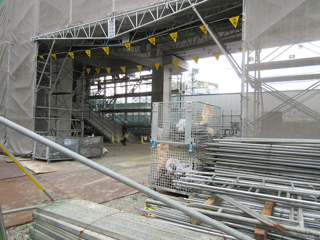 上を見上げますと、下り線の高架は綺麗に出来上がっていますね。