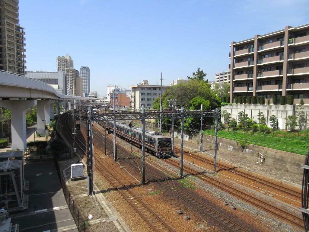 そして、同じ場所、JR西日本の電車が下に走っている高架の上から、JR住吉駅方面の眺めを撮ったのがこちらの写真です。