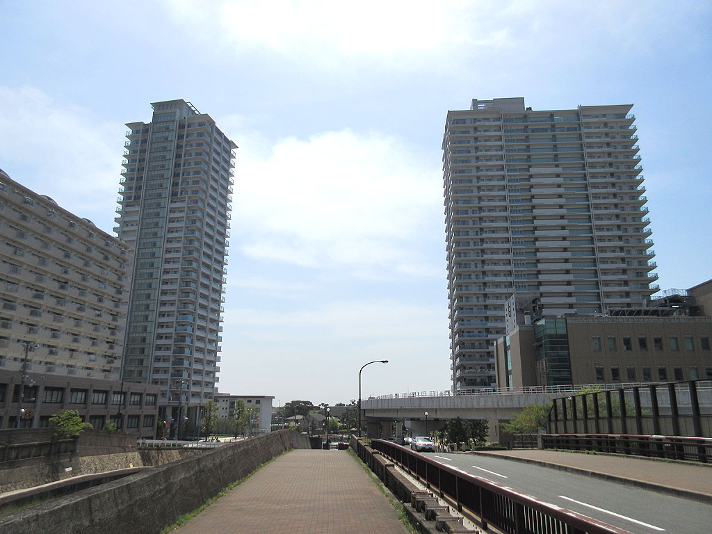 向かって右側に建っていますのが、住吉川リバーサイドフォーラム ザ・レジデンス…、平成25年9月に竣工した、地上28階建てのマンションなのですが、以前、1度だけ、高層階のお部屋をご案内させて頂いた事がありますが、最近の高級マンションはここまでになったのかと、大変、びっくりした記憶があります。