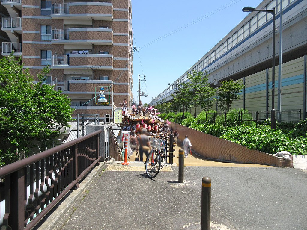 そうしますと、だんじり祭りのご一行が、国道43号線の側道を西に向けてやって来たのです。