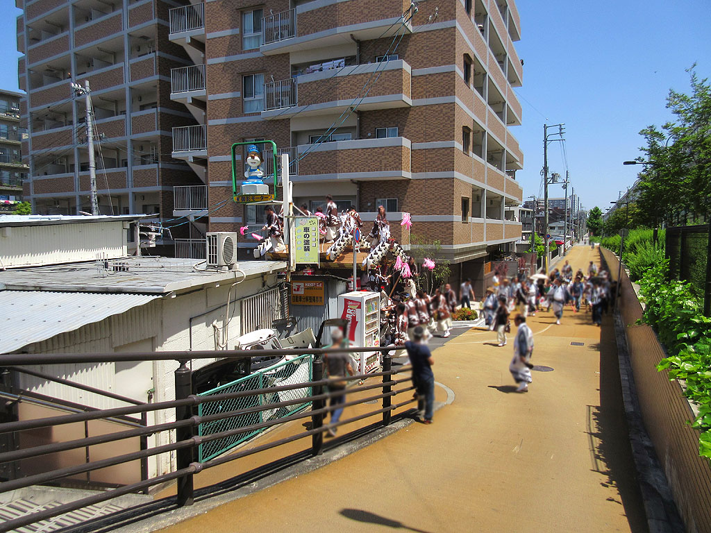 こじんまりしただんじり祭り。岡本の方のだんじり祭りや、住吉の方のだんじり祭りは、山車ももっと大きいでしょうし、国道2号線や山手幹線などの幹線道路を通りますので、見物客もたくさんいて、大賑わいなのだと思いますが、この青木や魚崎南町のエリアは、こじんまりとした街ですので、見物客もとっても少なく、ちょっと寂しい感じがしますね。