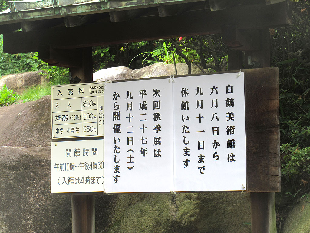 平成27年6月15日現在、春季展は6/7(日)で終了した様で、次回、秋季展が9/12(土)から12/6(日)まで行われるとの事で、現在は白鶴美術館の貴重な展示品を見に行く事が出来ないのですが、国宝や重要文化財が東灘区にあるとは思いませんでしたので、9月からの秋季展には、是非とも行ってみたいと思います。