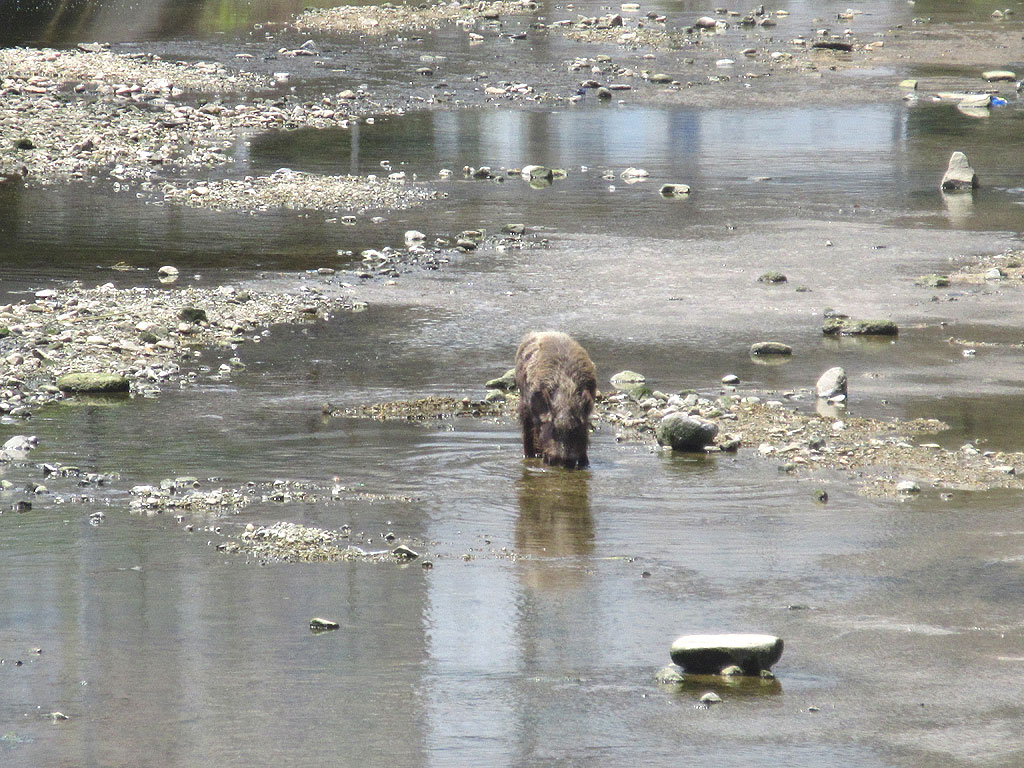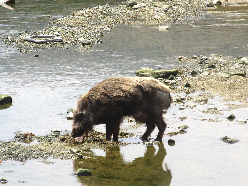 ズームで撮ってみたのですが、こんな感じ…、この前の猪と同じ猪かは分かりませんが、案外、頻繁に、天井川をここまで下って来るんですね。
