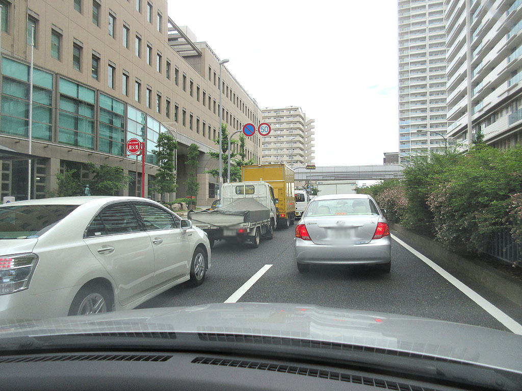 渋滞の先頭は東灘区の清流の住吉川の所の信号なのですが、その途中では、「東灘区役所前」のバス停でバスが停車すると、後続の車は動けなくなりますので、右の車線に入る事になり、そこで渋滞がまた起こりますし、東灘区役所へ入る車も、歩道を歩いている方が多い為に、なかなか、歩道を越えて東灘区役所の駐車場に入る事が出来ず、そこでまた後続の車が動けなくなり、渋滞が発生する訳です。