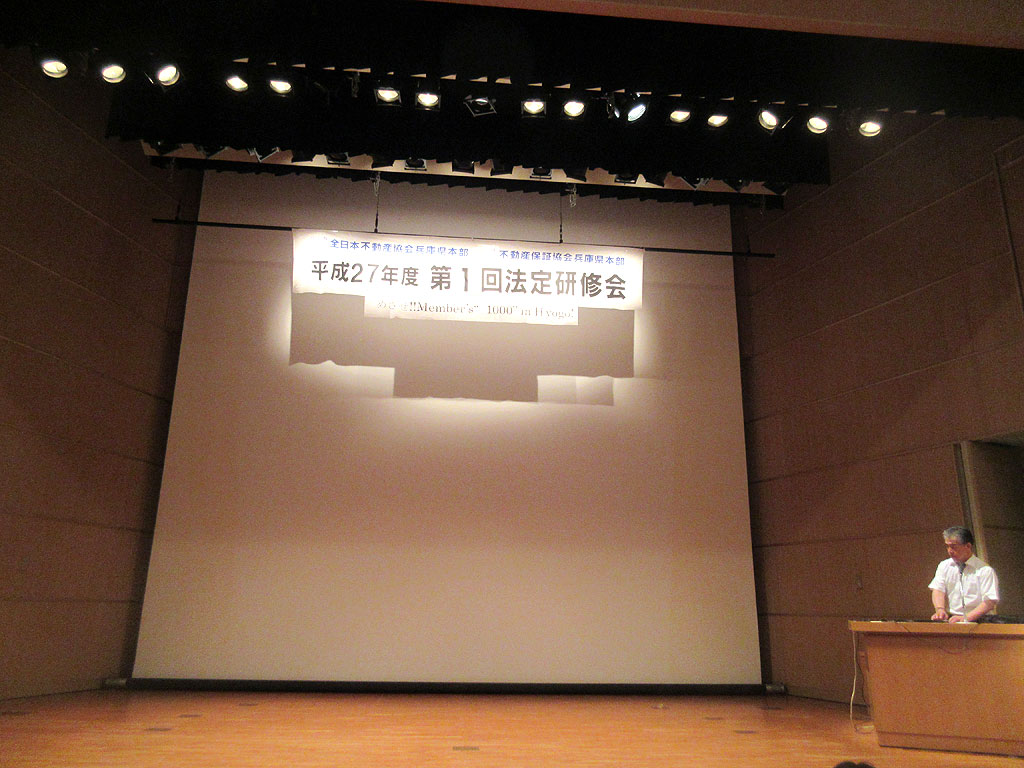 ここは、神戸市中央区のハーバーランドにある、神戸市産業振興センターの3階の大ホールですが、今回は今年度の第1回目の法定研修会でしたので、多くの不動産業者の方が参加されておられました。
