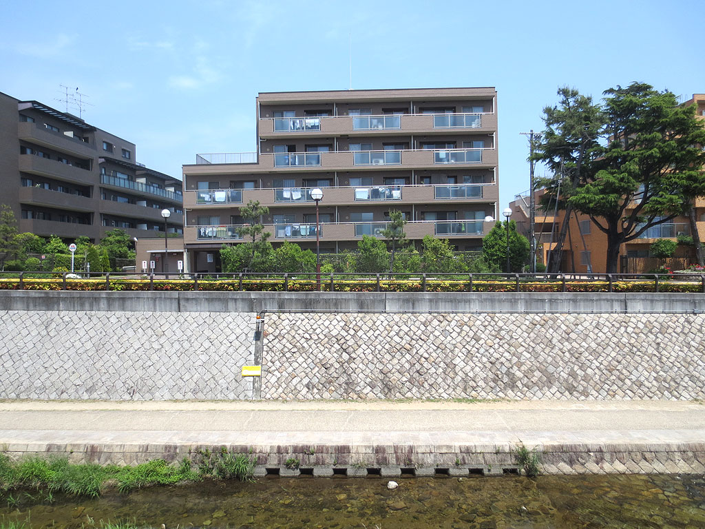 この写真を見ましても、このマンション、つくづく、素晴らしい立地ですね…、目の前に住吉川がありますので、健康の為に散歩やウォーキング、ジョギングなどをするにしましても、住吉川の川岸を活用すれば、とっても気持ち良く健康を維持出来ますよね。