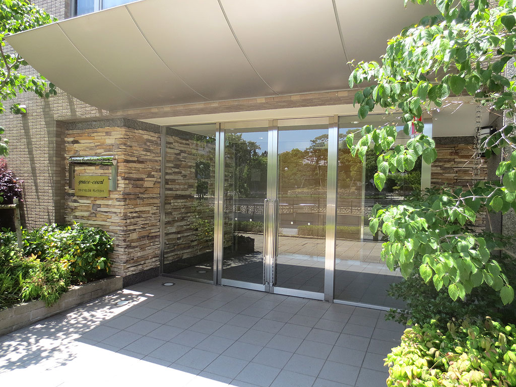 ステイツ住吉川グレイスコートのエントランス。管理は、野村不動産パートナーズ(株)への全部委託になり、管理員は日勤でおられます。