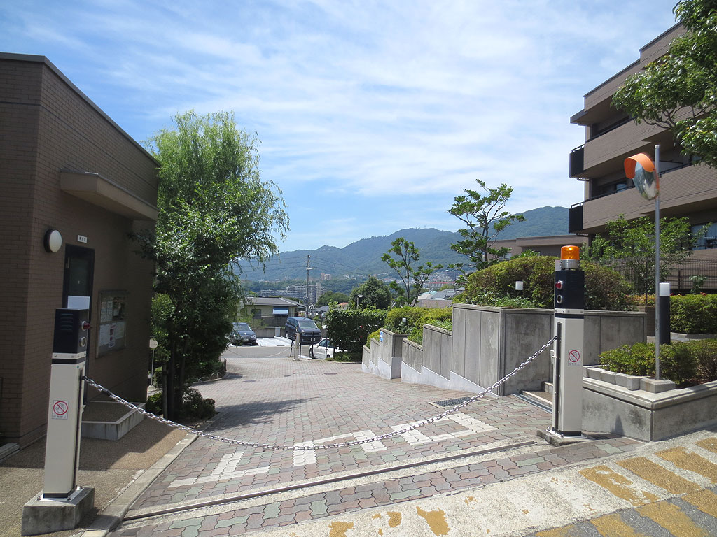 この写真は、リーベスト御影の敷地内駐車場へのエントランスですが、このマンションは、伊藤忠アーバンコミュニティ(株)の全部委託での管理になりますので、日勤で管理人さんもいらっしゃいますし、エントランスはオートロックで、住人の安全に配慮をした造りになっております。
